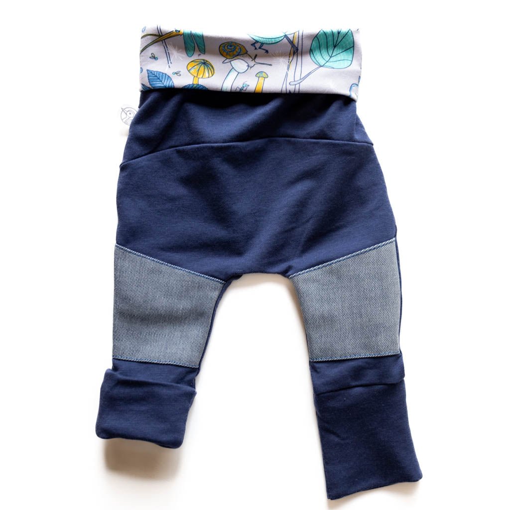 - La pièce en denim au genou contribue à la durabilité du pantalon, surtout quand ton petit aventurier se promène à quatre pattes.