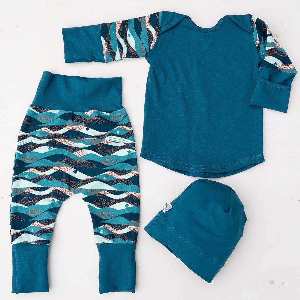 Le PEAK de la douceur, maintenant pour nouveau-né. Tu cherches le parfait cadeau durable pour une nouvelle maman? Voici un ensemble pour petit montagnard trop mignon et hyper confo qui te simplifiera la vie! Le trio PEAKBWA est tout indiqué.